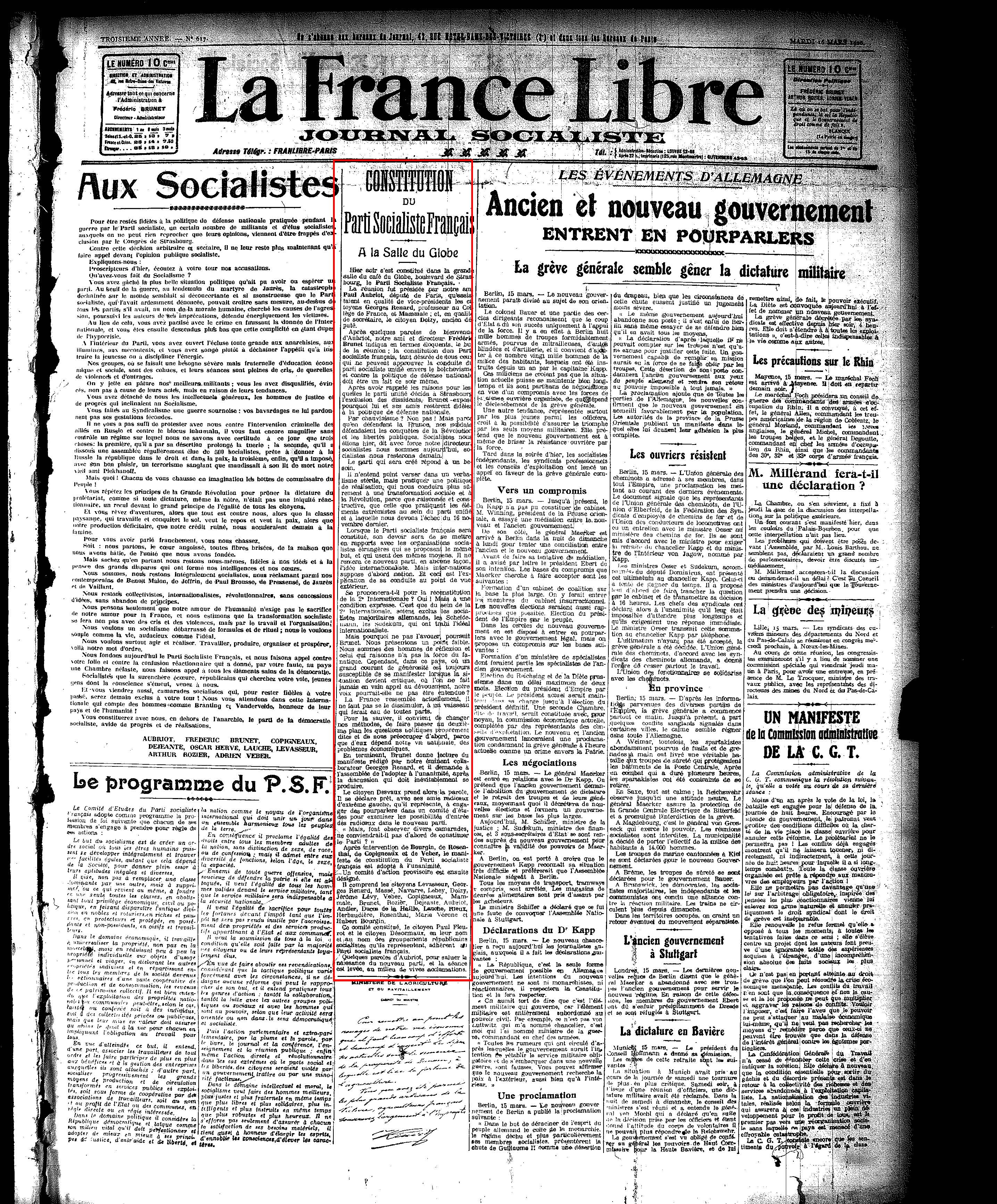 Constitution du Parti socialiste français à la Salle du Globe