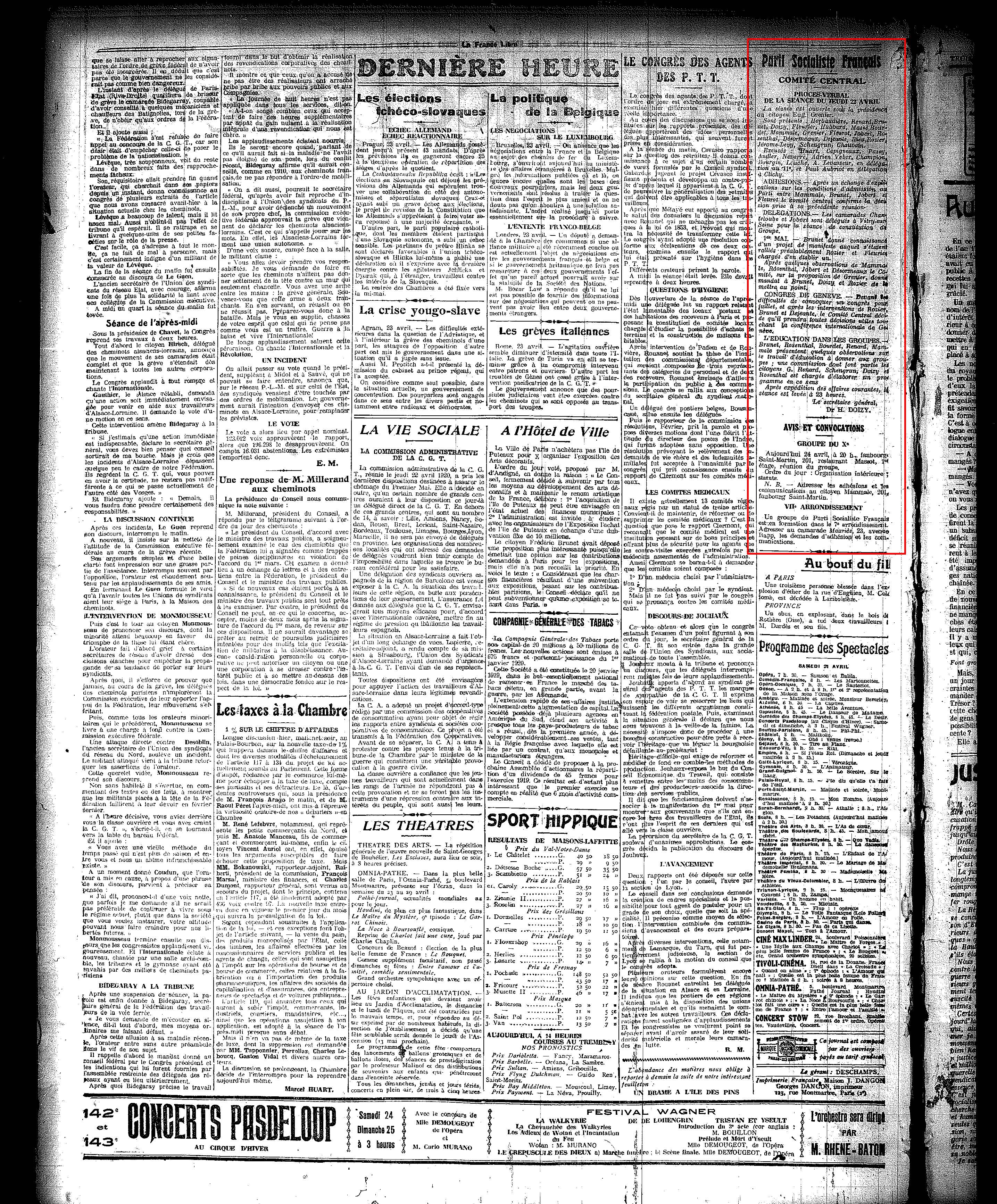 , 24 avril 1920, p. 2.