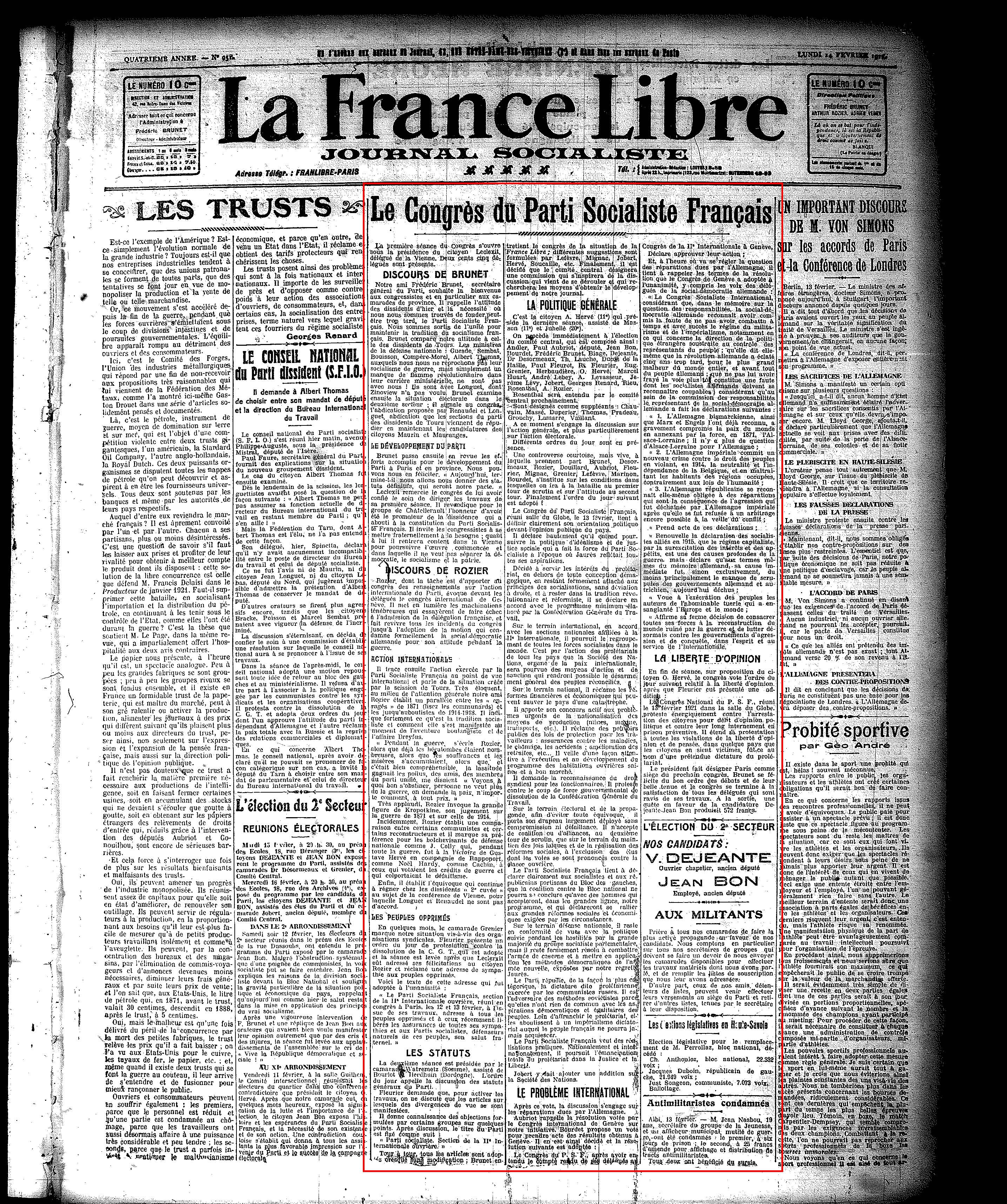 , 14 février 1921, p. 2.