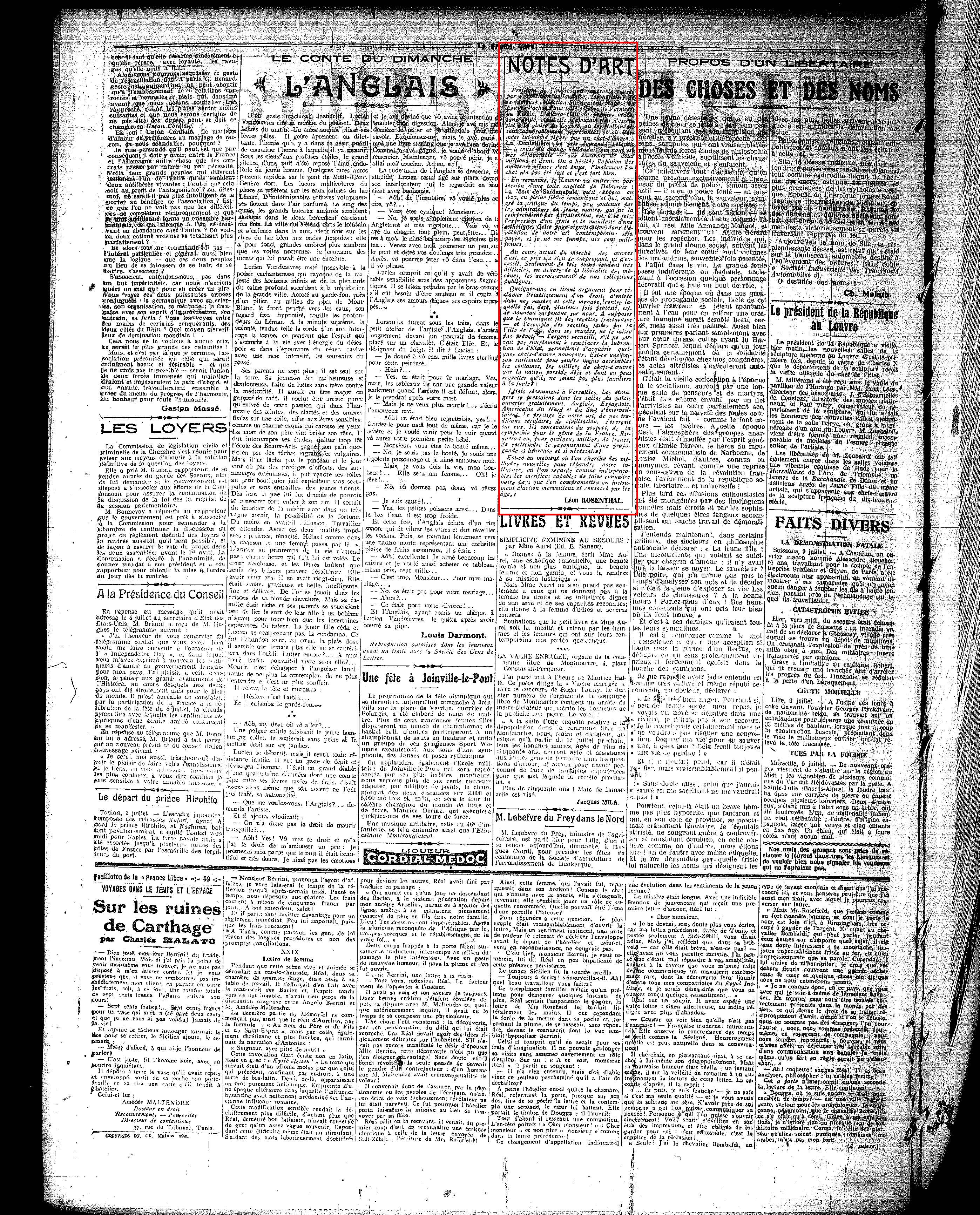 , 10 juillet 1921, p. 2.