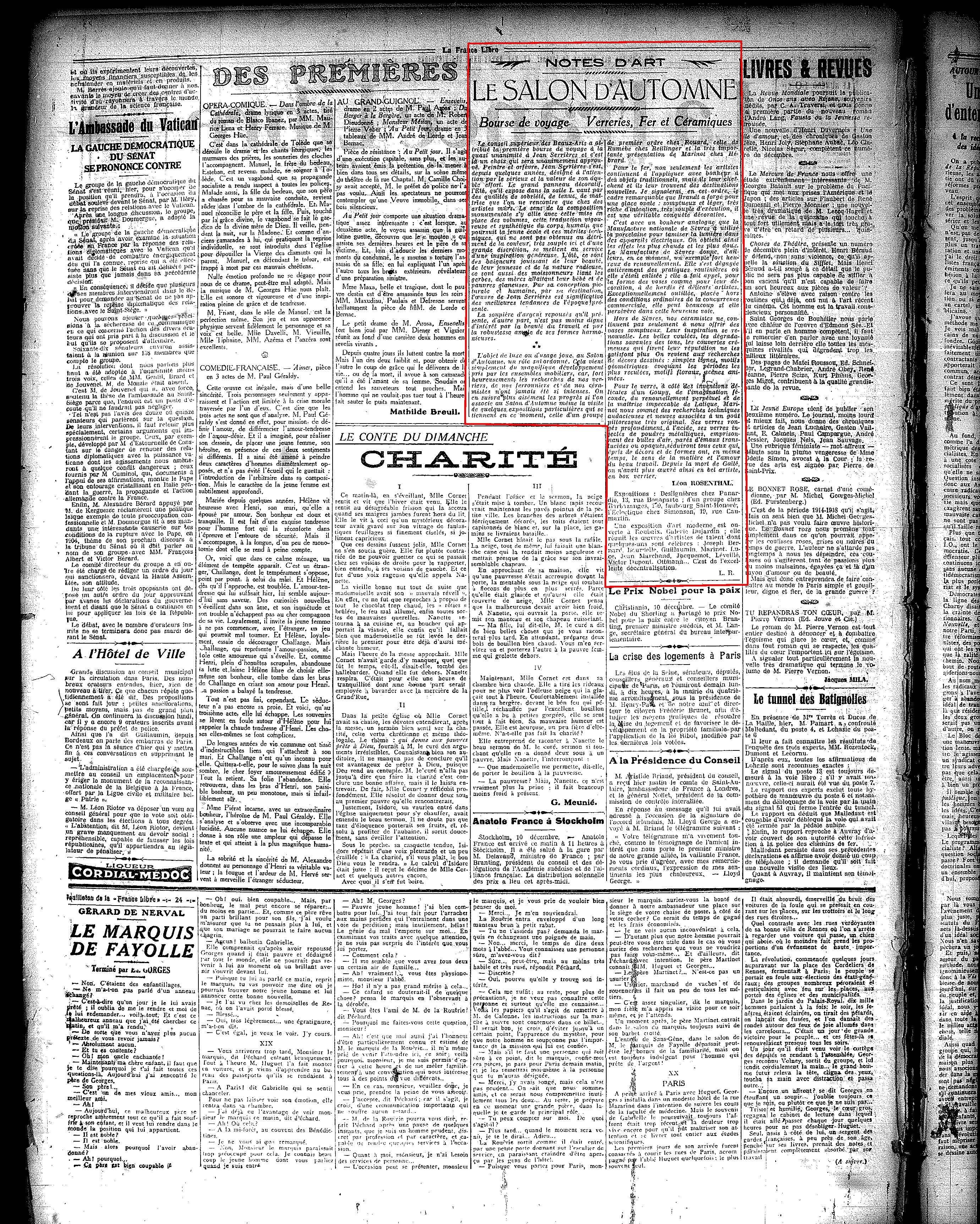 , 11 décembre 1921, p. 2.